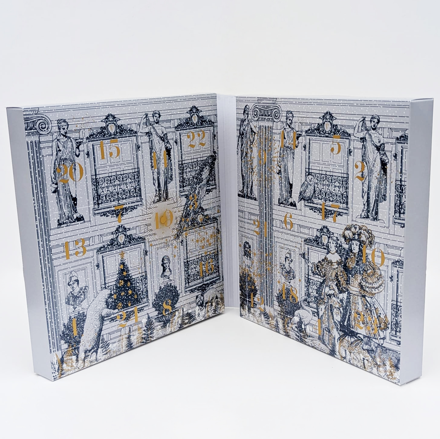 Plongez dans l’atmosphère somptueuse d’un Noël à Versailles avec notre calendrier de l’Avent gourmand bleu profond, subtilement orné de touches dorées. Son décor élégant évoque la magie des fêtes dans un palais illuminé, où chaque détail rappelle le faste, la délicatesse et l’art de vivre à la française.