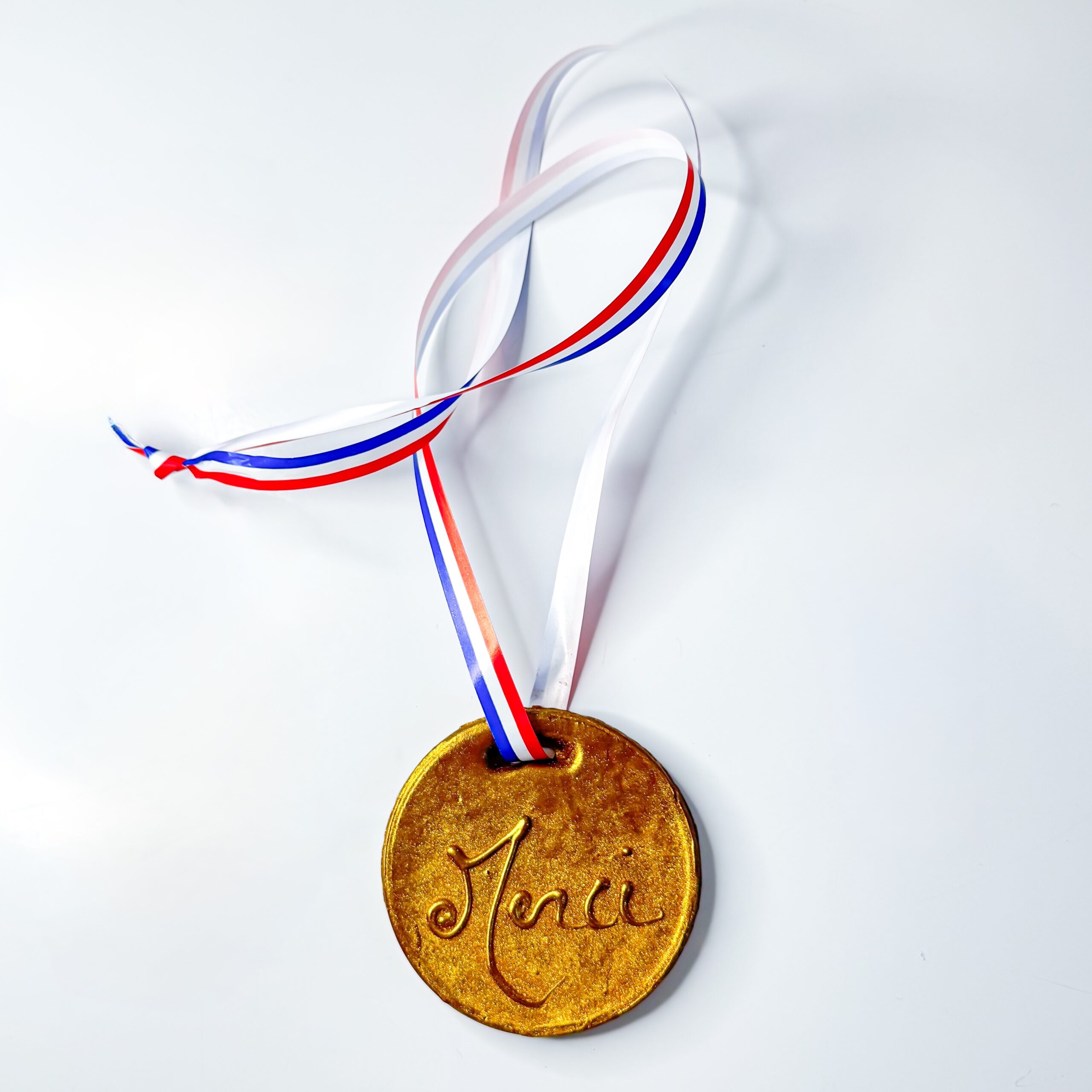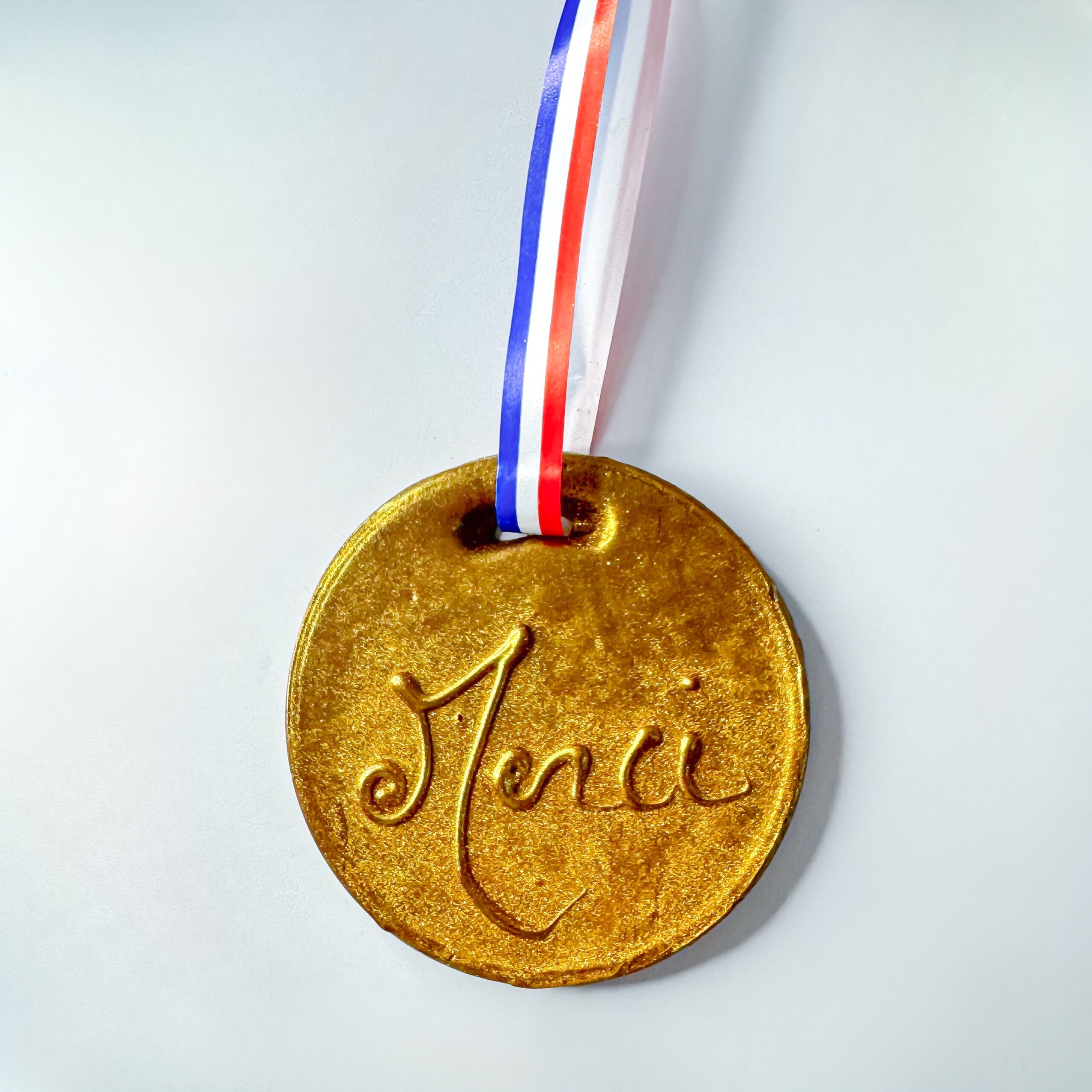 Médaille en chocolat au lait ou noir. Une création gourmande et faite maison par nos pâtissiers et chocolatiers.