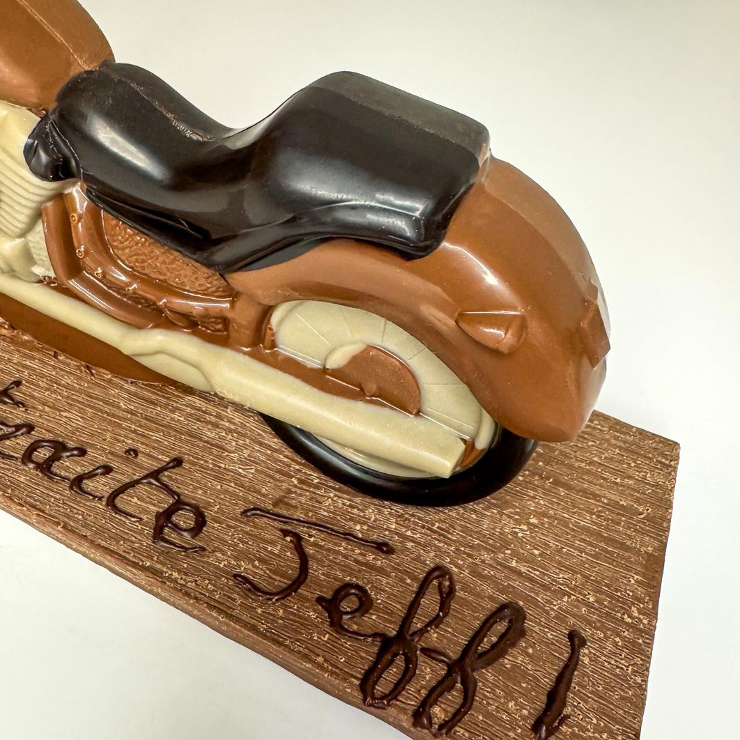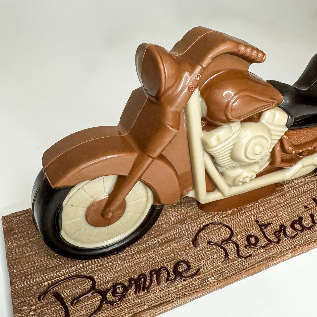 Offrez une pièce d’exception, alliant gourmandise et imagination, avec notre moto en chocolat artisanale, disponible dès maintenant sur notre site ou en boutique.