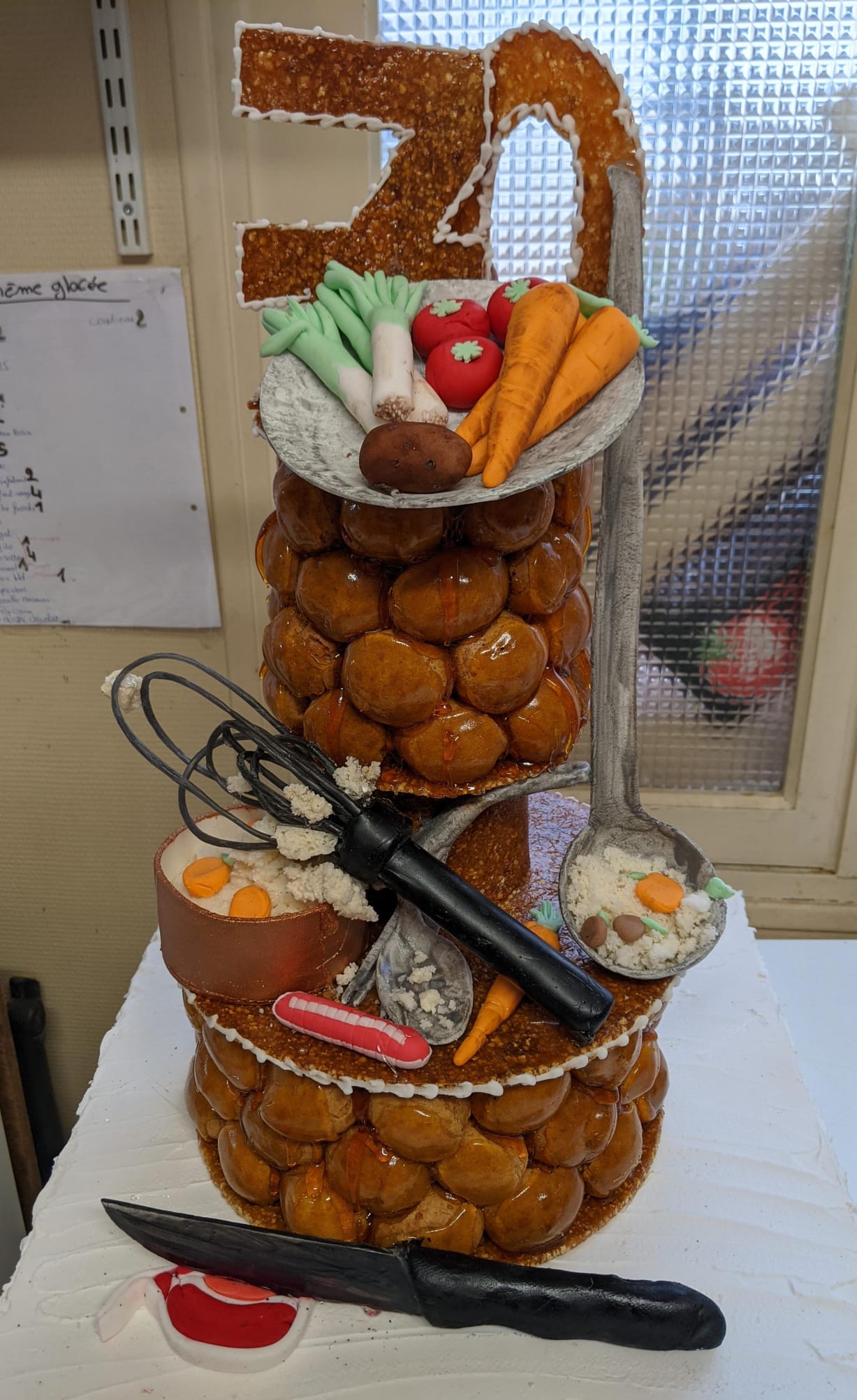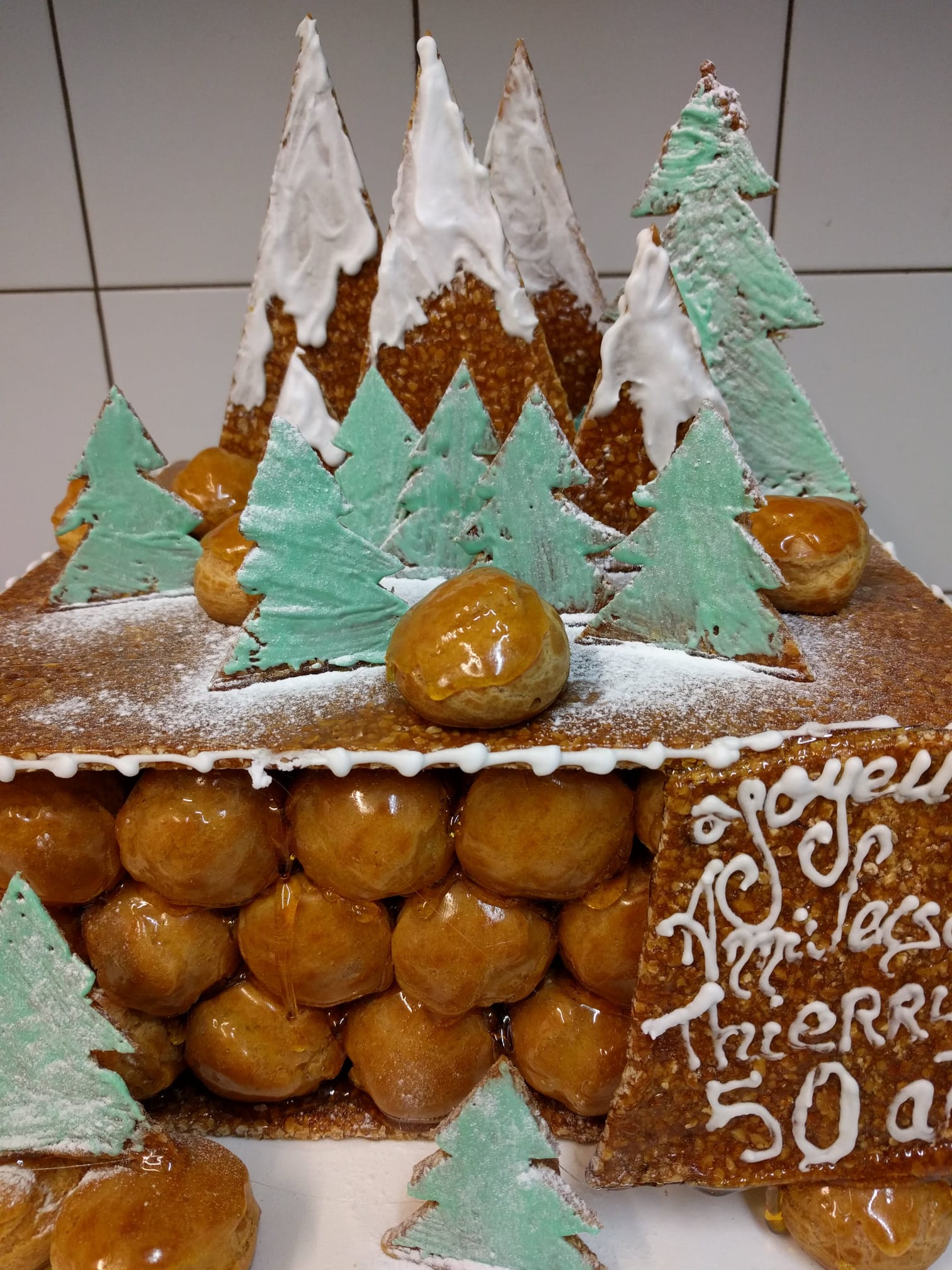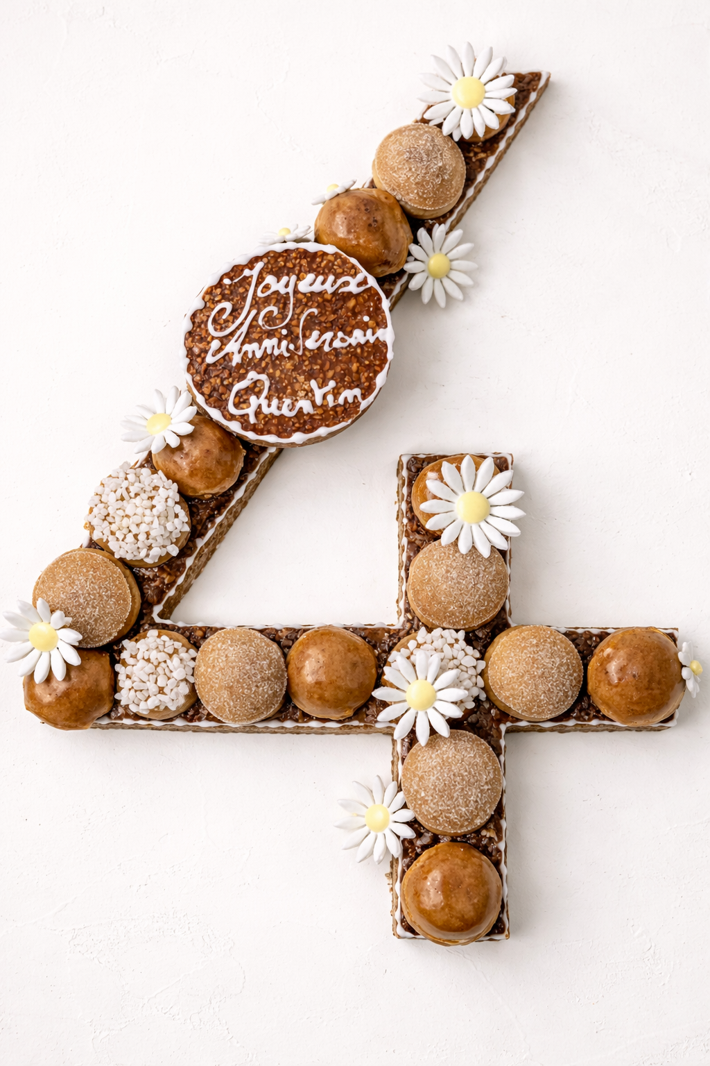 Des choux à la crème généreux sont disposés sur une structure en nougatine croustillante. Ensuite, ils prennent la forme du sujet de votre choix. Par exemple : un animal, un monument, un symbole ou un prénom. Ici, tout est possible. Il suffit de nous en parler.