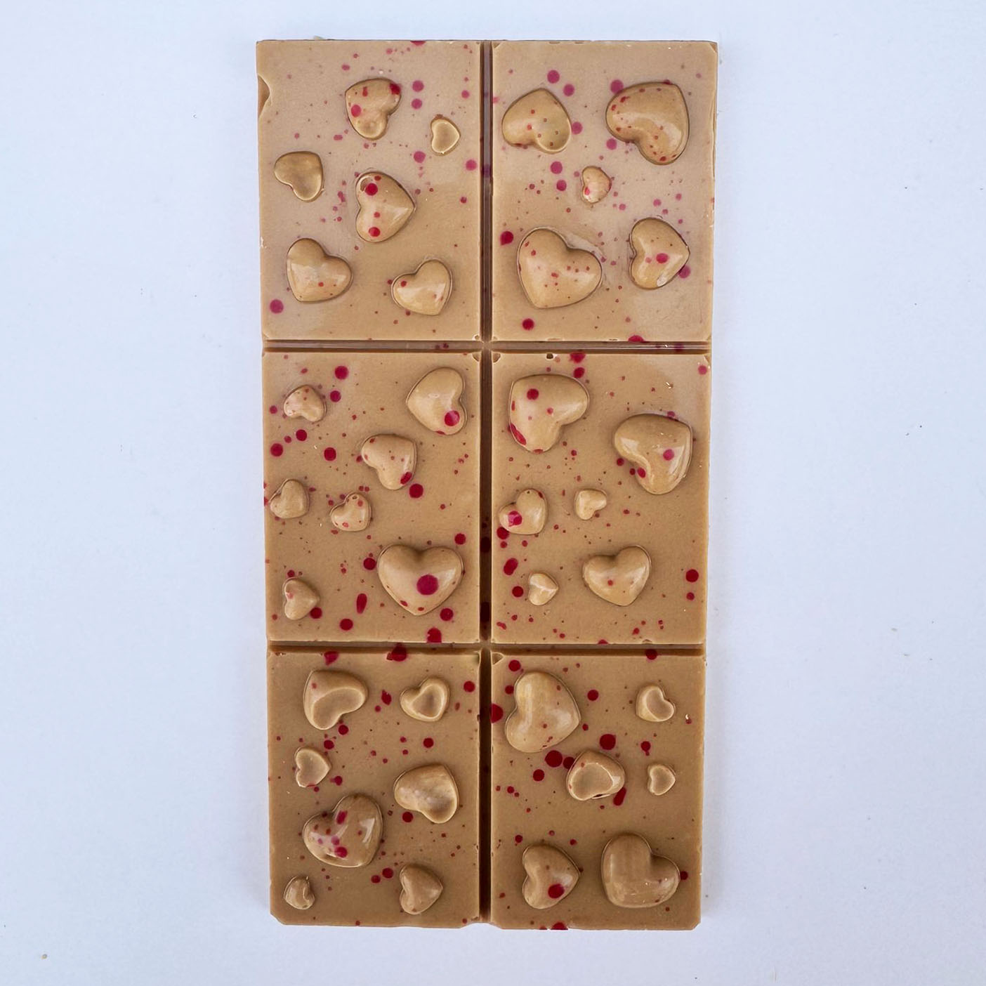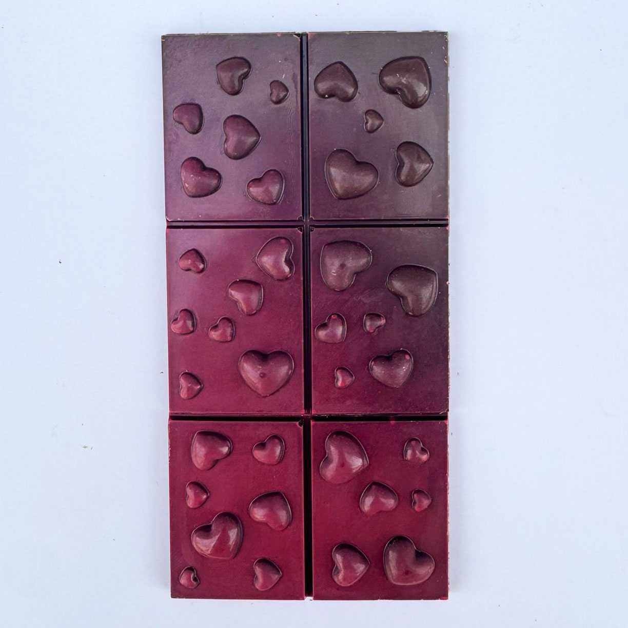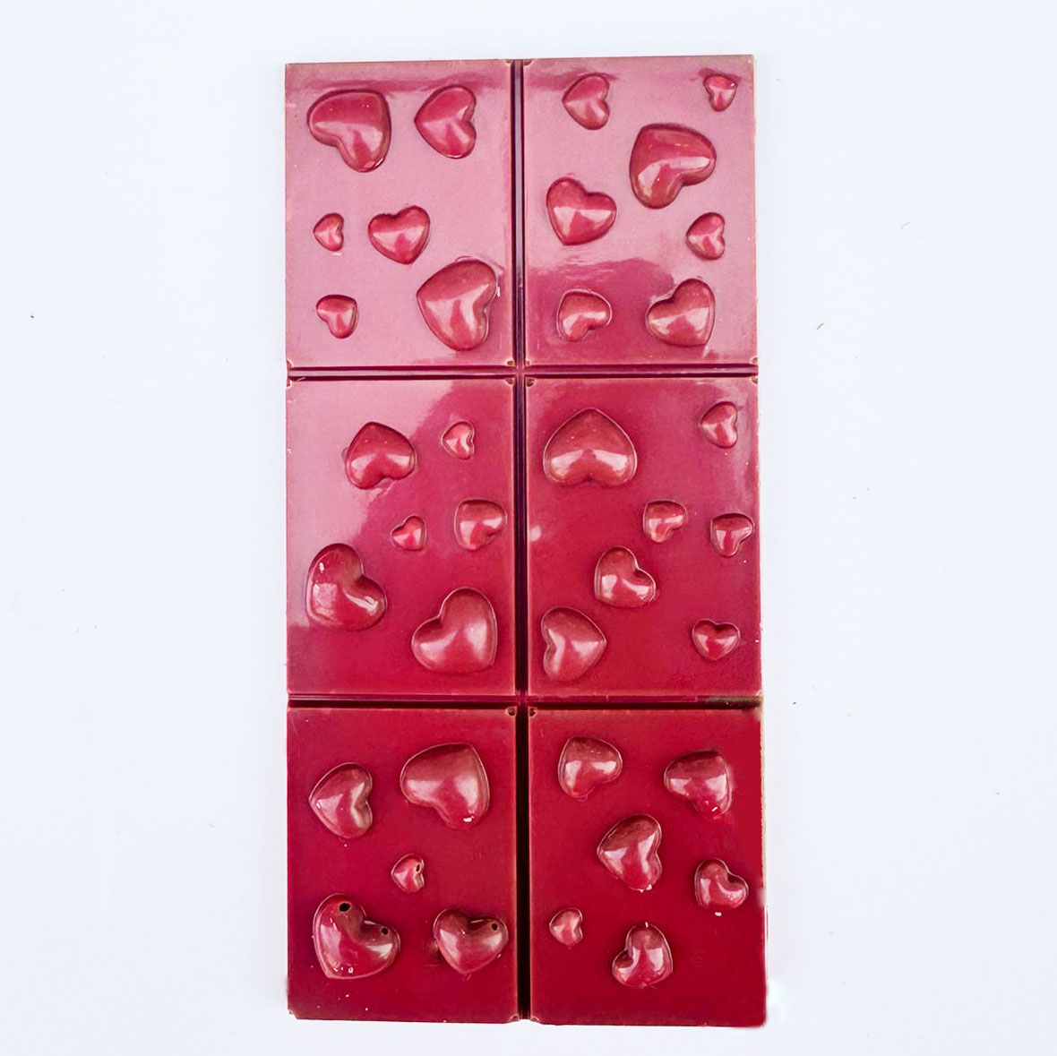 Chaque tablette porte un décor de cœurs, spécialement créé pour la Saint-Valentin.